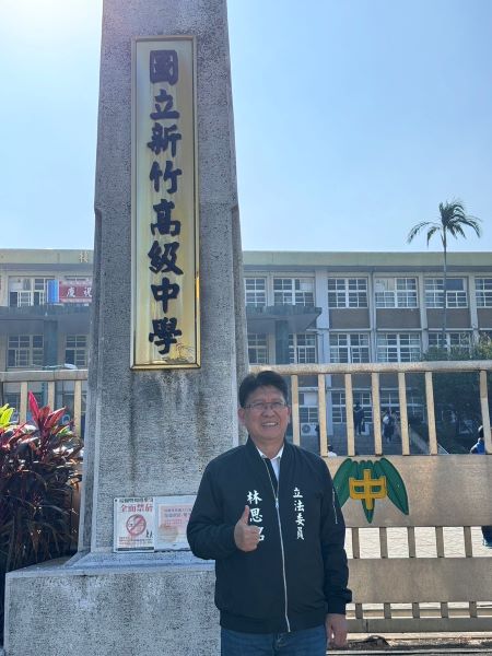 ▲立委林思銘今天應邀返回母校新竹中學參加…