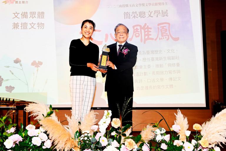 ▲文學貢獻獎由簡榮聰老師榮獲。(圖/南投…