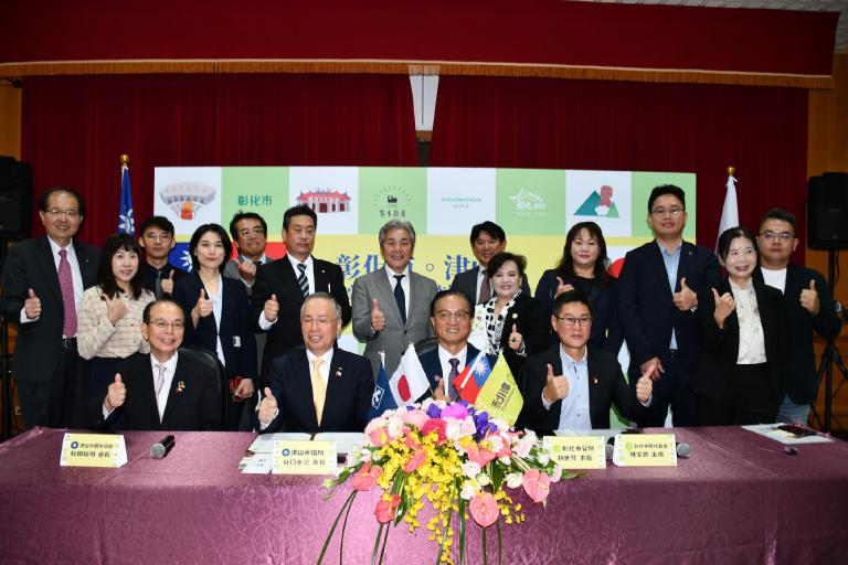 ▲彰化市長林世賢17日與日本岡山縣津山市谷…