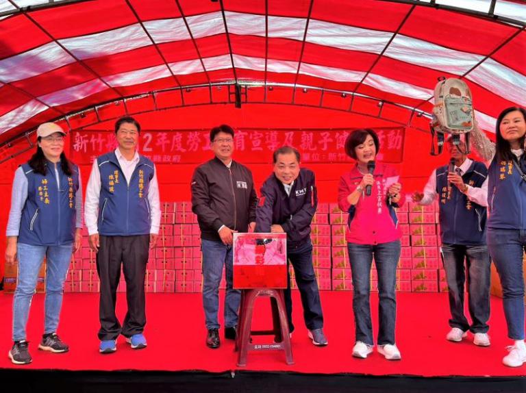 ▲副縣長陳見賢於勞工親子健行活動中抽出幸…
