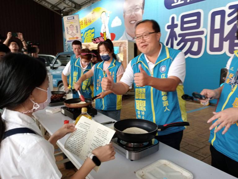 ▲彰化第二選區立委參選人楊曜聰為鼓勵學童…