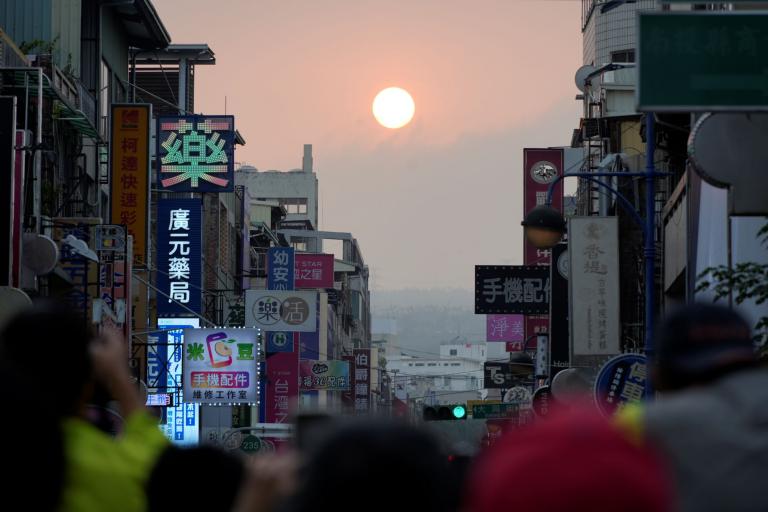 ▲每逢秋冬之際,南投市民族路遠方八卦山脈…