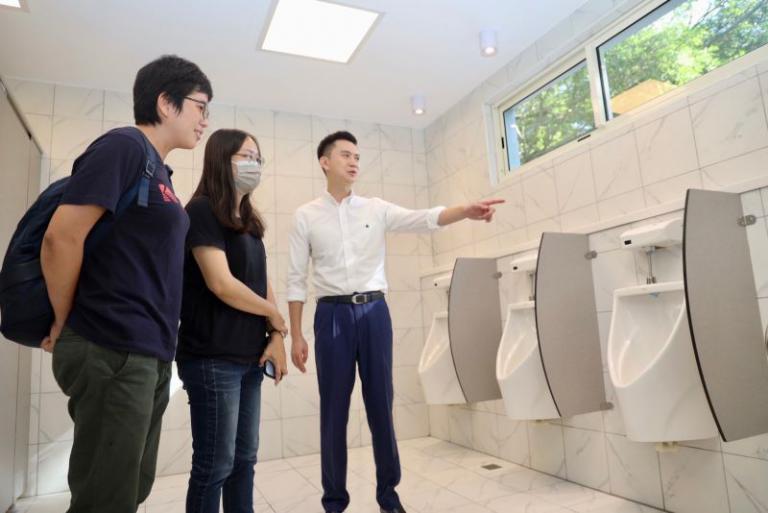▲市長鄭朝方全面改善竹北舊城區公廁,讓市…