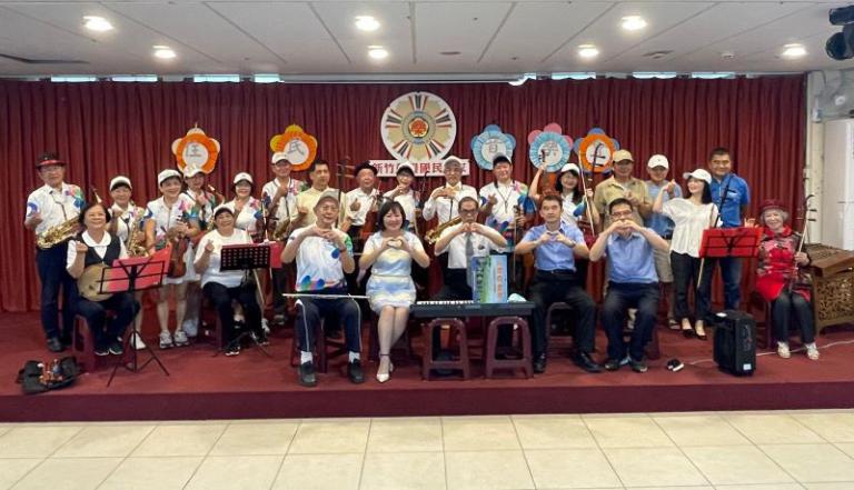 ▲新竹榮家主任白恩惠(中)與韻聲國樂社簡…
