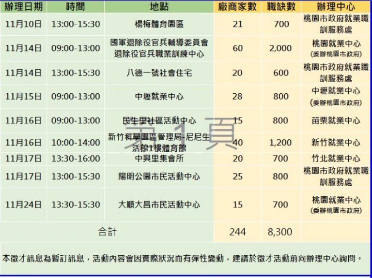 ▲桃園、新竹、苗栗等地區辦理9場徵才活動…