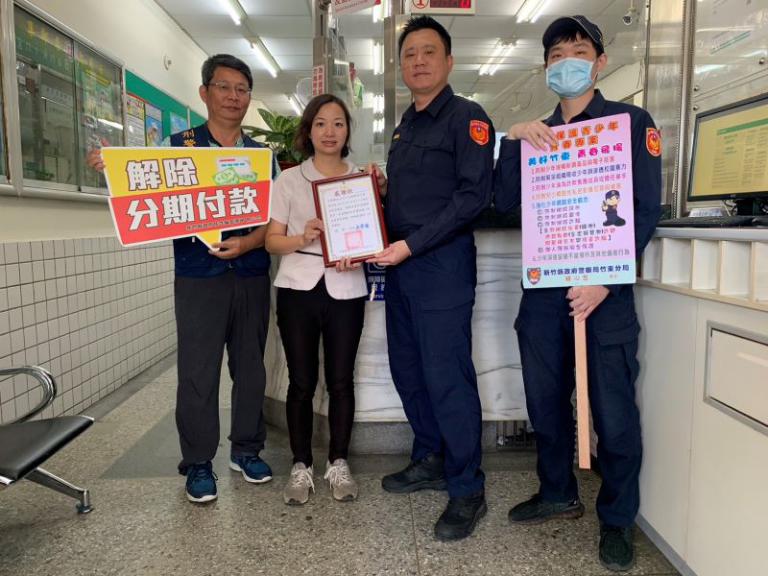 ▲竹東分局長吳學安前往郵局頒贈感謝狀給阻…