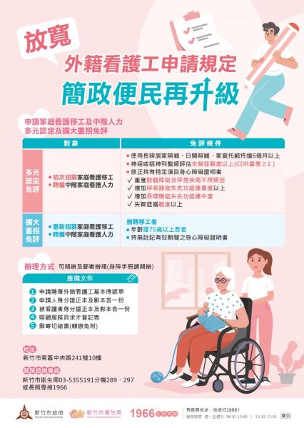 ▲新竹市家庭看護移工申請海報。 (圖/記者…