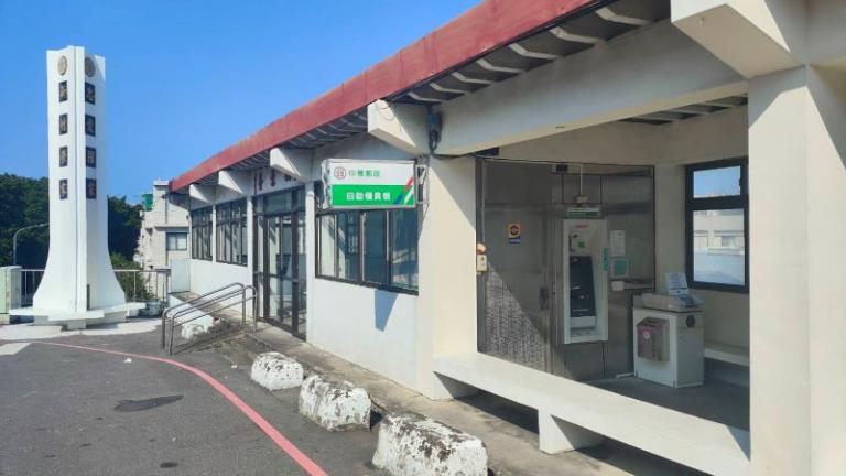 ▲新竹榮家大門前觀景台郵局設置提款機。 (…