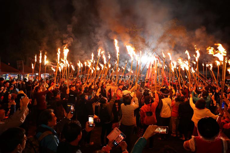 ▲清境火把節火把點燃儀式,與會族人與來賓…