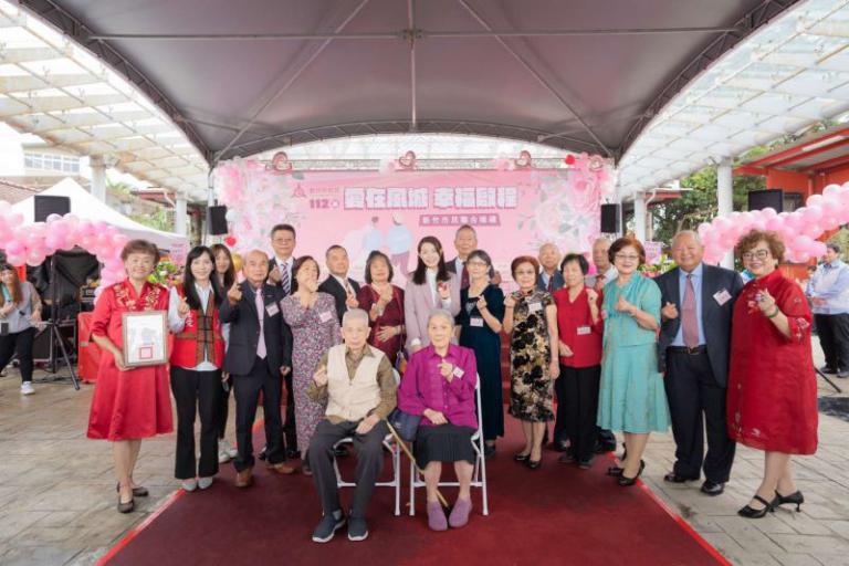 ▲新竹市鄭氏宗親會7對鑽石婚及金婚賢伉合…