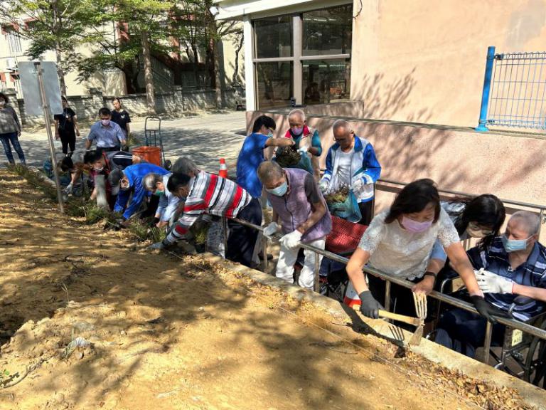 ▲住民揮汗植栽,與員工一同打造榮家花園。…