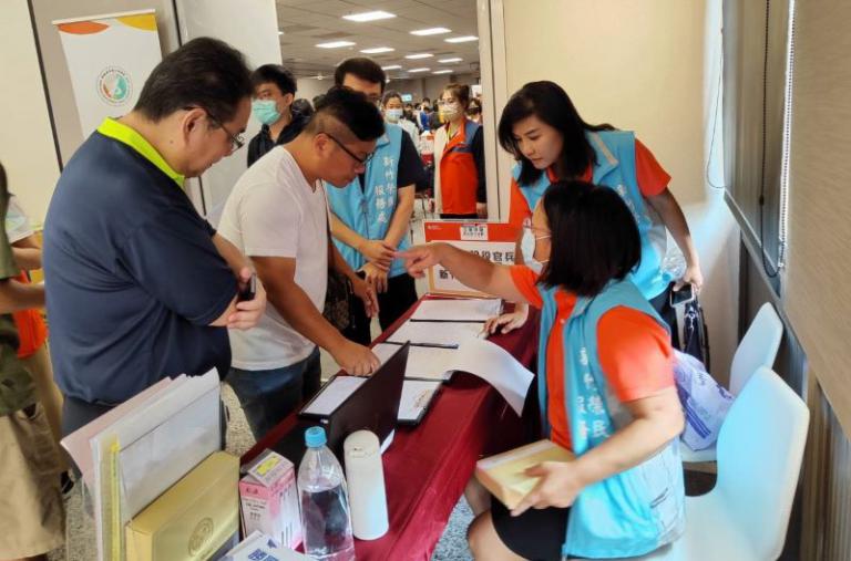 ▲新竹榮服處工作同仁於現場設立服務櫃檯,…