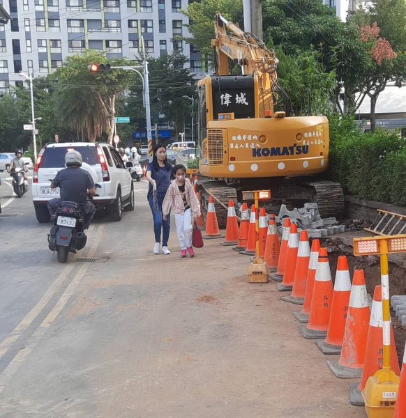 ▲台電在二重國小學區附近執行埋設管線工程…