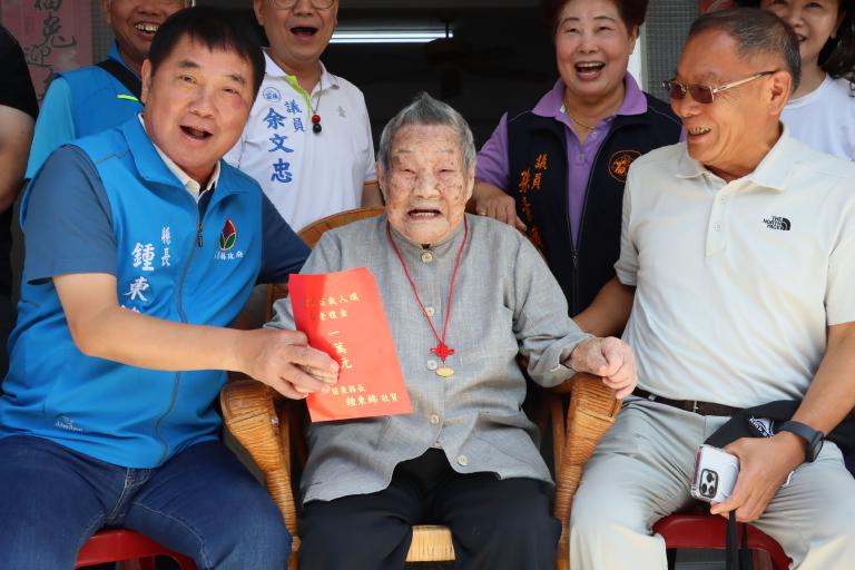 ▲慰訪百歲人瑞列車開抵苗栗市,在市長邱鎮…