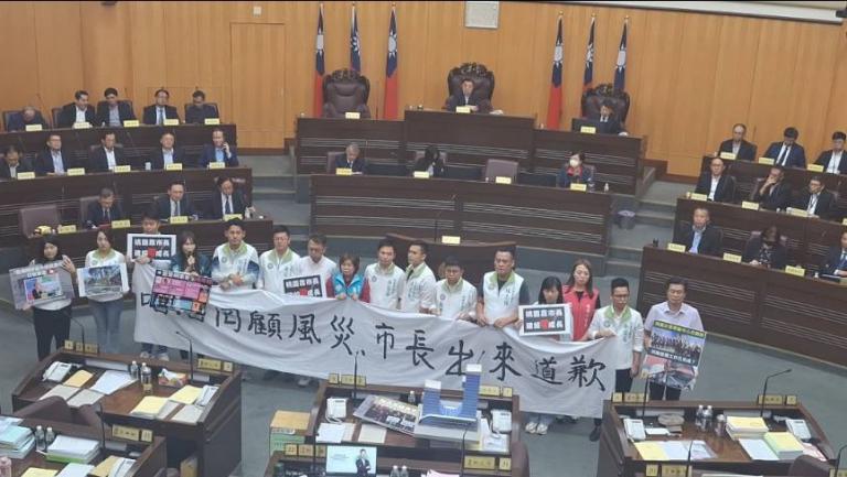 ▲市長施政報告日,民進黨市議會黨團猛批張…