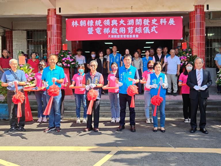 ▲林朝棟統領與大湖開發史料展暨電梯啟用剪…