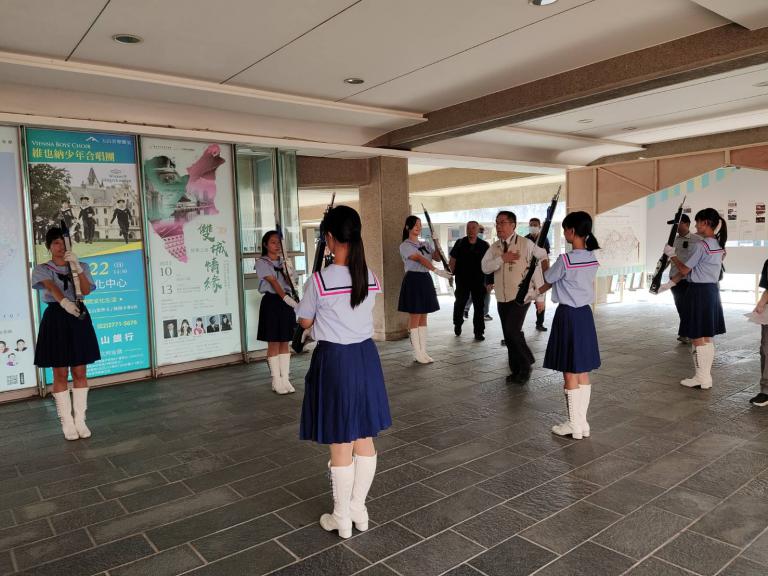 ▲家齊海藍天儀隊迎接市長黃偉哲入場。(圖/…