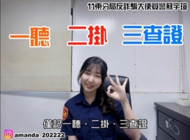 ▲竹東警分局正妹女警蘇宇瑄擔任反詐宣導大…