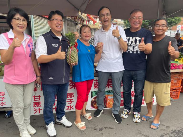 ▲熱情攤商致贈鳳梨吉祥物 (圖/立委林思銘…