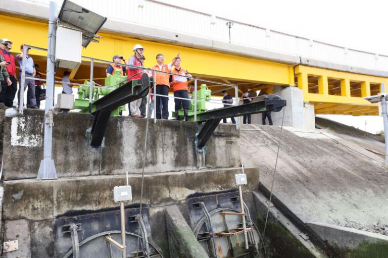 ▲縣長楊文科上午視察竹北拔子窟堤防,確保…