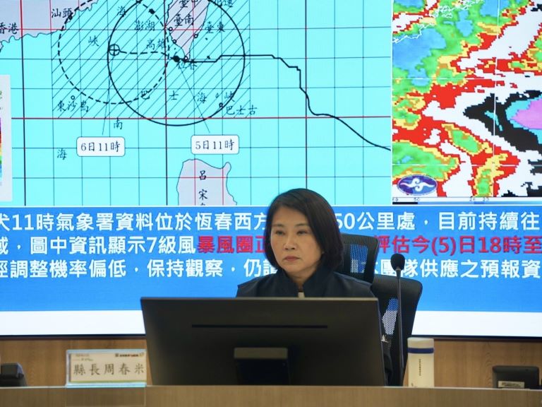 ▲高虹安坐鎮二級災變中心加強防災整備。(…