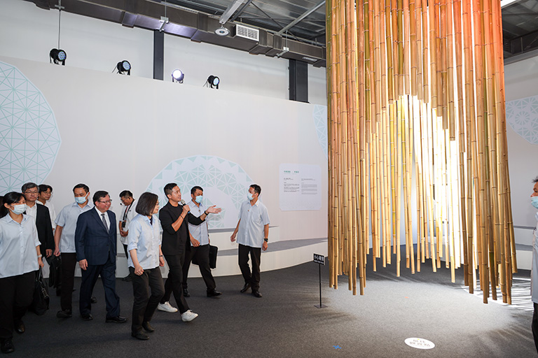 ▲總統蔡英文參觀世客博世界館,體驗18公尺…