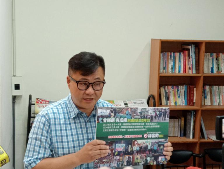 ▲民進黨彰化縣黨部主委楊富鈞22日針對黨職…