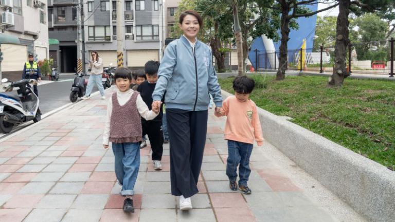 ▲高虹安市長與朝山國小幼兒園學童實地走訪…