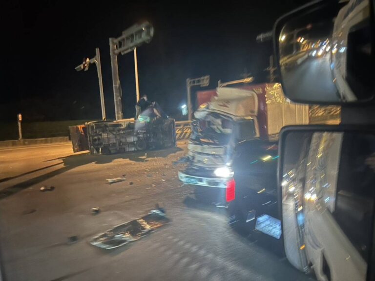 台61線鳳鼻隧道南向入口貨車追撞翻覆! 3人輕傷