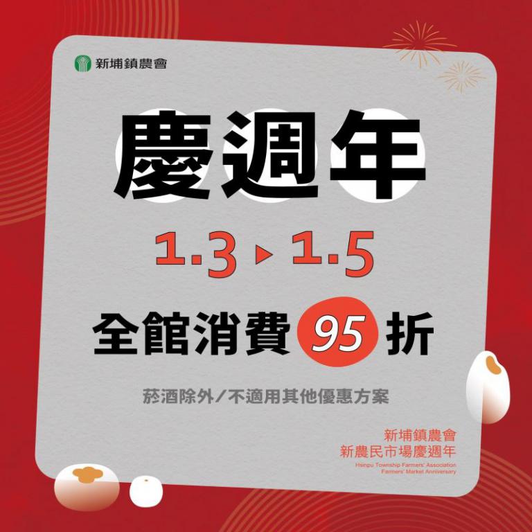 ▲新埔鎮農會慶周年1月3日至5日全館消費95…