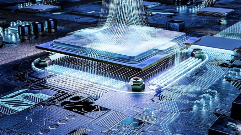 畫面呈現一座大型半導體晶圓廠的外觀示意…