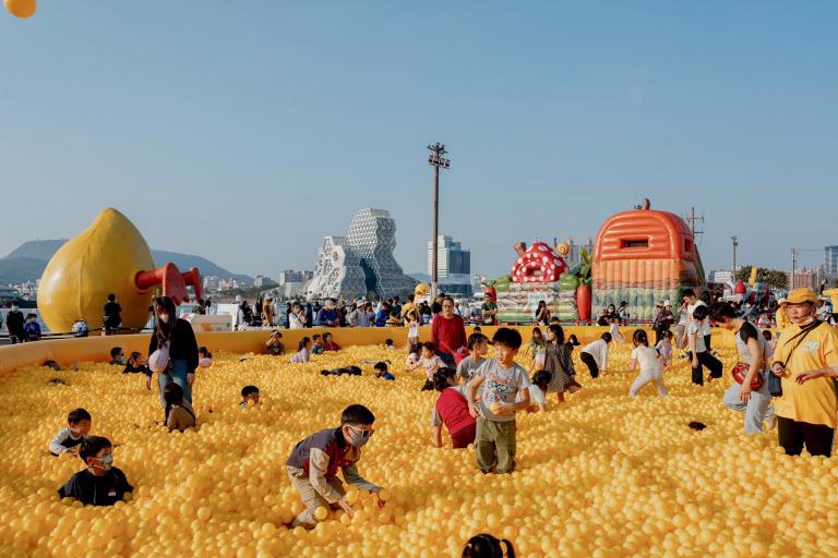 ▲深受小朋友喜愛的黃色球池。(圖/觀光局提…