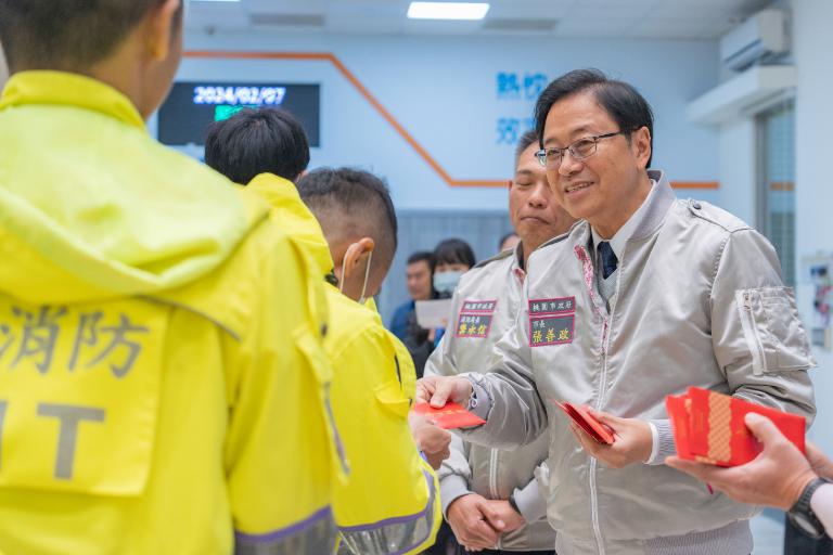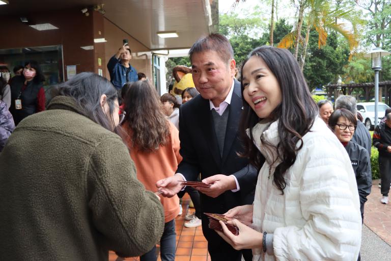 ▲市長高虹安發放小紅包。(圖/記者蔣彤雲攝…