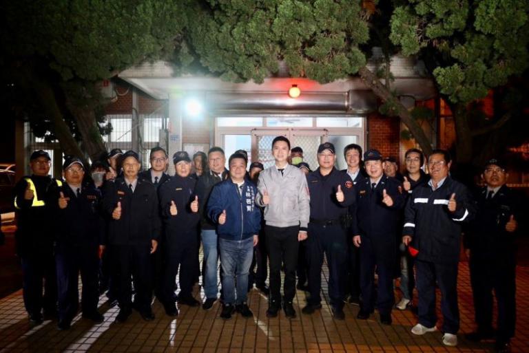 ▲竹北市長鄭朝方6日晚間走訪多個分駐所,…