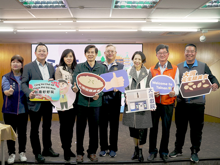 ▲黃偉哲與明華園小生孫翠鳳共同邀請全國民…