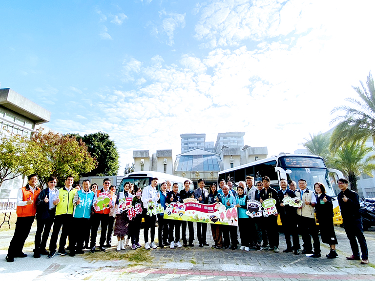 ▲縣長周春米帶領傳播暨國際事務處處長鄞鳳…