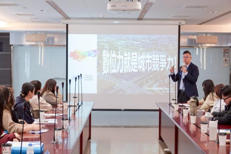 數位局林谷隆局長分享簡報。(圖/記者廖妙…