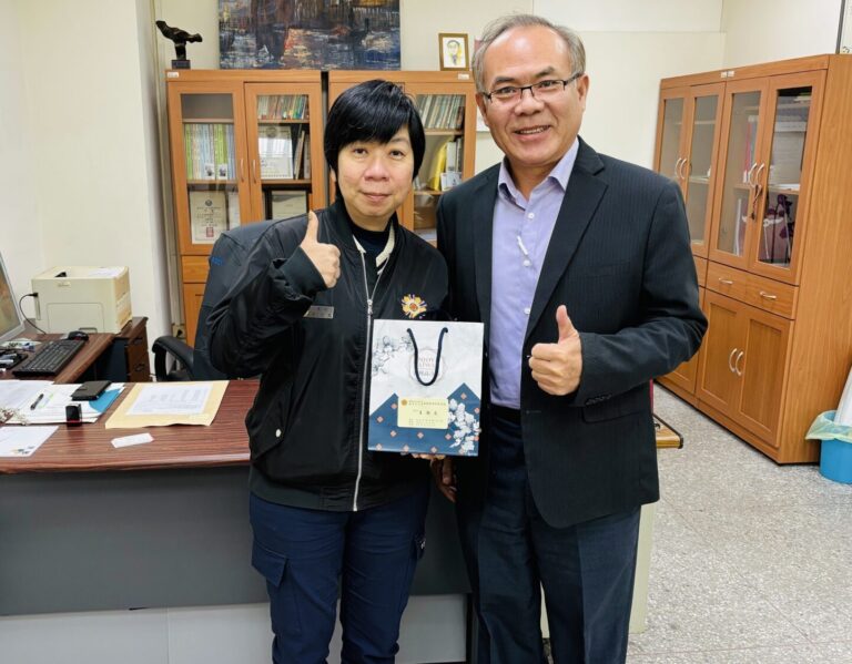 ▲南投縣榮服處處長王怡文(左)拜訪台中修平…