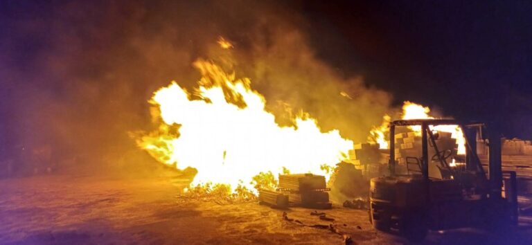 澎湖湖西鄉木棧板起火火勢兇猛。翻攝畫面 …