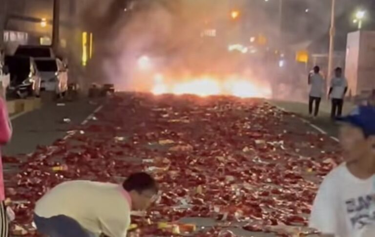 ▲仁武八德東路一帶晚間鞭炮聲不絕於耳,引…