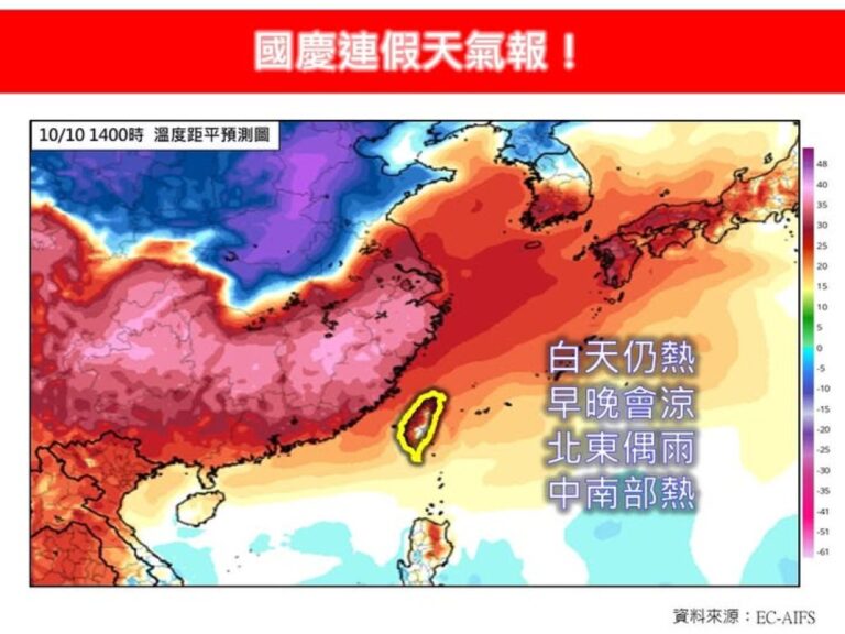 國慶連假熱力登場!中南部飆35度 午後雷陣…
