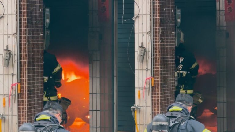 ▲小爆炸瞬間,黑煙一度快要覆蓋消防人員。…