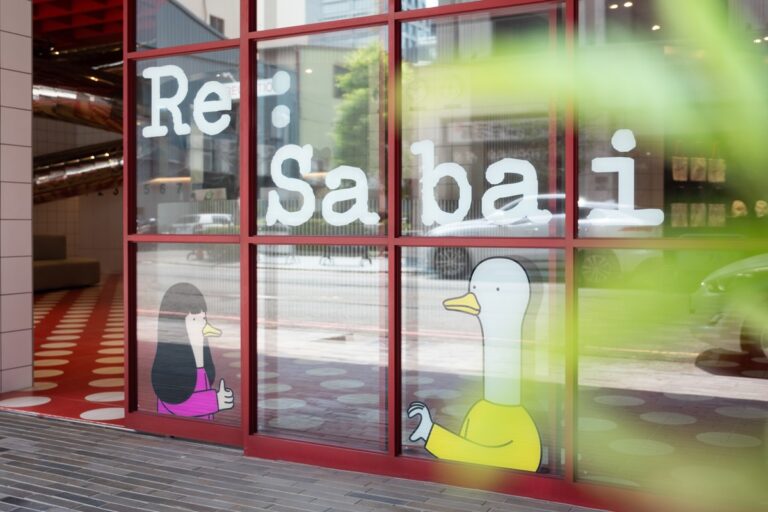 ▲旅店外觀玻璃貼上泰國藝術家 Kaptor 的趣…