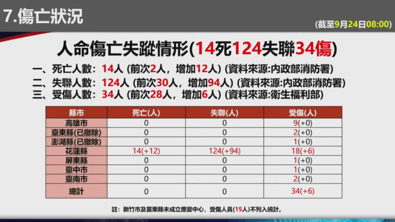 ▲花蓮光復泡在水中,已造成14人死亡。(圖…