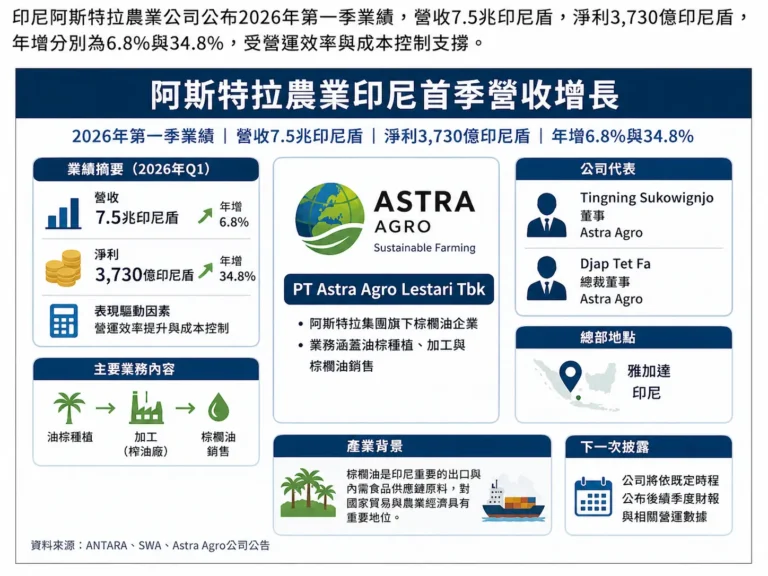 Astra Agro營收7.5兆印尼盾 淨利3,730億印…