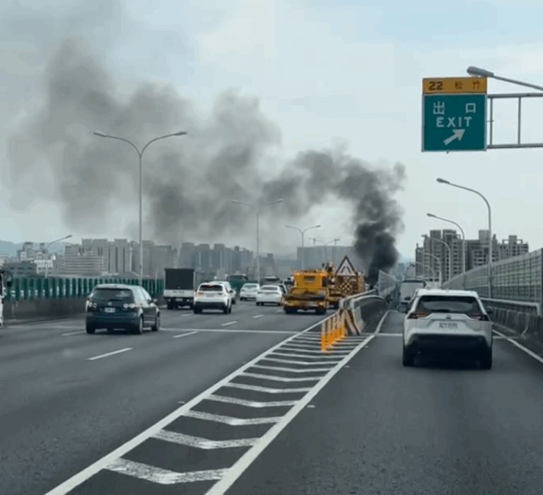 台74線松竹匝道口附近發生火燒車事故。翻…