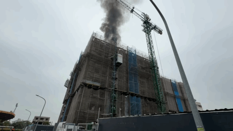 ▲台南新營工地火警!7樓如煙囪狂冒黑煙 火…