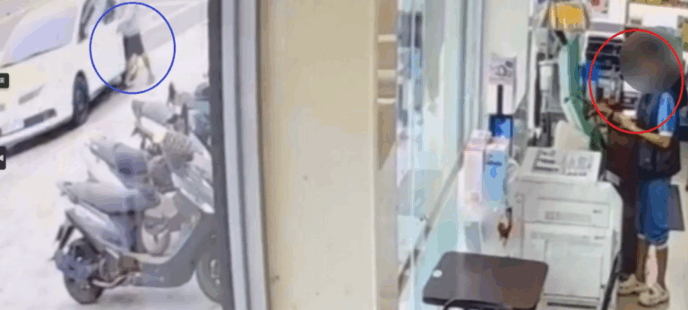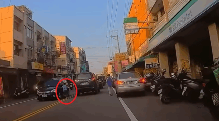 草屯鎮一女子下車至超商內購物(右紅圈處…