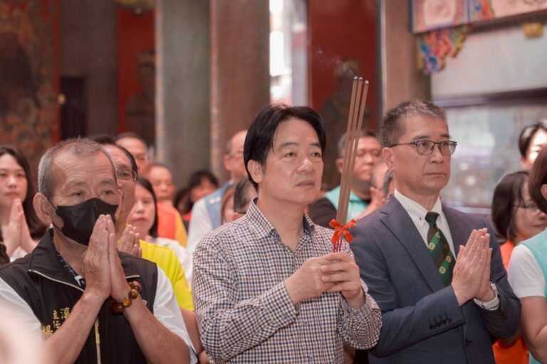 圖說:賴清德向溪湖福安宮媽祖上香後,和黨…