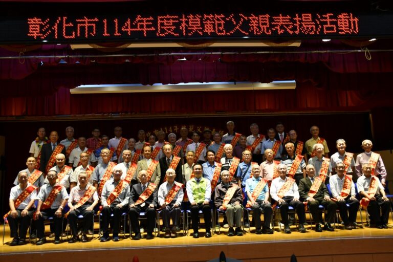 圖說:林世賢到台下和彰市模範父親們一一握…